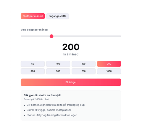 Du velger selv summen du ønsker å støtte og kan når som helst justere bidraget direkte fra plattformen.